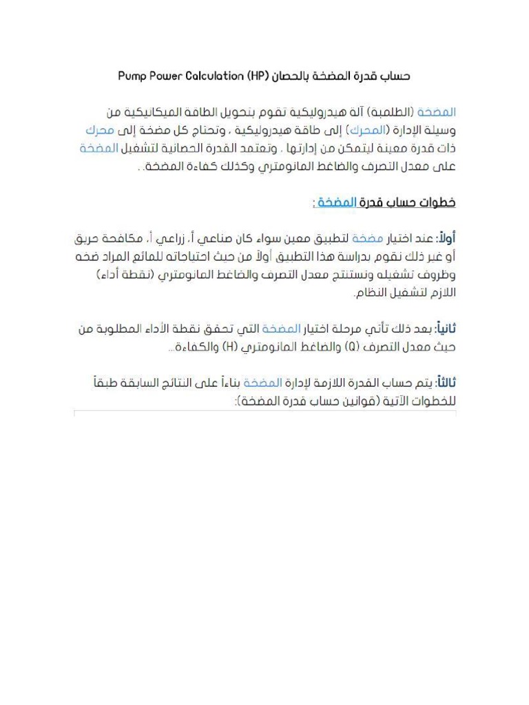 المضخة او ما تعرف بالطلمبة آلة هيدروليكية تقوم بتحويل الطاقة الميكانيكية من وسيلة الإدارة المحرك إلى طاقة هيدروليكية وتحتاج كل مضخة إلى محرك ذات قدرة معينة ليتمكن من إدارتها وتعتمد القدرة الحصانية لتشغيلالمضخة. حساب قدرة المضخة بالحصان pump power calculation hp خطوات حساب قدرة المضخة. طفايات الحريق الإلكترونية. كيف يتم حساب قدرة مضخة الحريق.