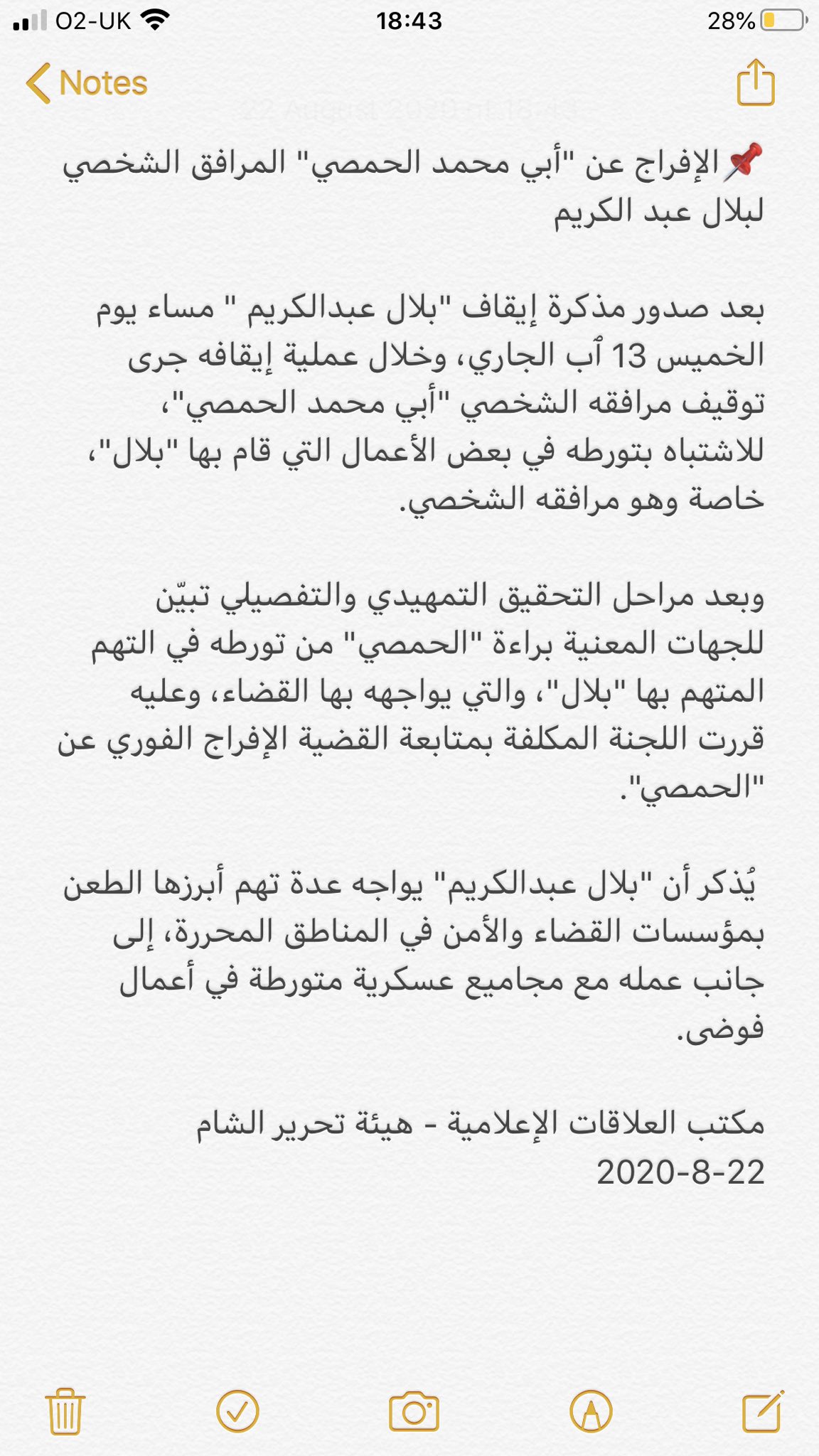 Aymenn J Al Tamimi On Twitter Hay At Tahrir Al Sham Confirms Release Of Bilal Abdul Kareem S Driver Abu Muhammad Al Homsi Determining Him To Be Innocent Of Involvement In The Things Of Which Bilal Is