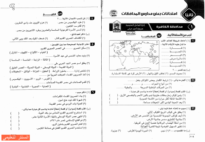 امتحانات الدراسات الاجتماعية للصف الاول الاعدادى ترم اول 2019 للادارات المختلفة للعام السابق
